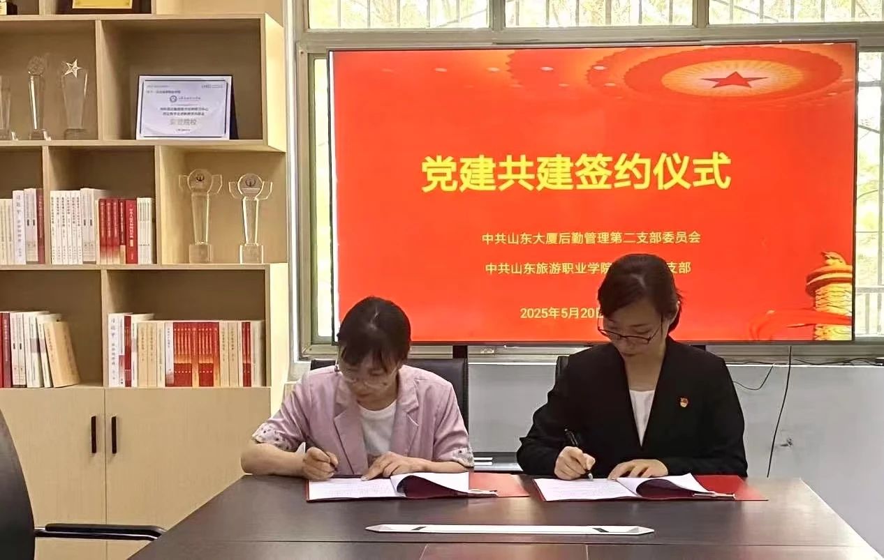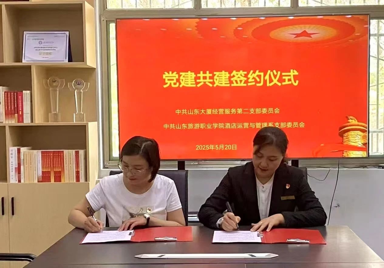 双方围绕“组织建设互鉴、党建载体互用、党员干部互动、人才培养互促、业务发展互助”五大核心方向展开深度研讨,就创新党建活动形式、推动产学研协同等议题达成共识。会上,山东大厦与山东省旅游职业学院相关支部正式签署党建共建协议,标志着双方合作迈入新阶段!未来,双方将通过联合开展主题党日、举办党建论坛、共建实训基地、推进双向挂职交流等举措,推动党建与业务同频共振,实现资源共享、优势互补、发展共赢。