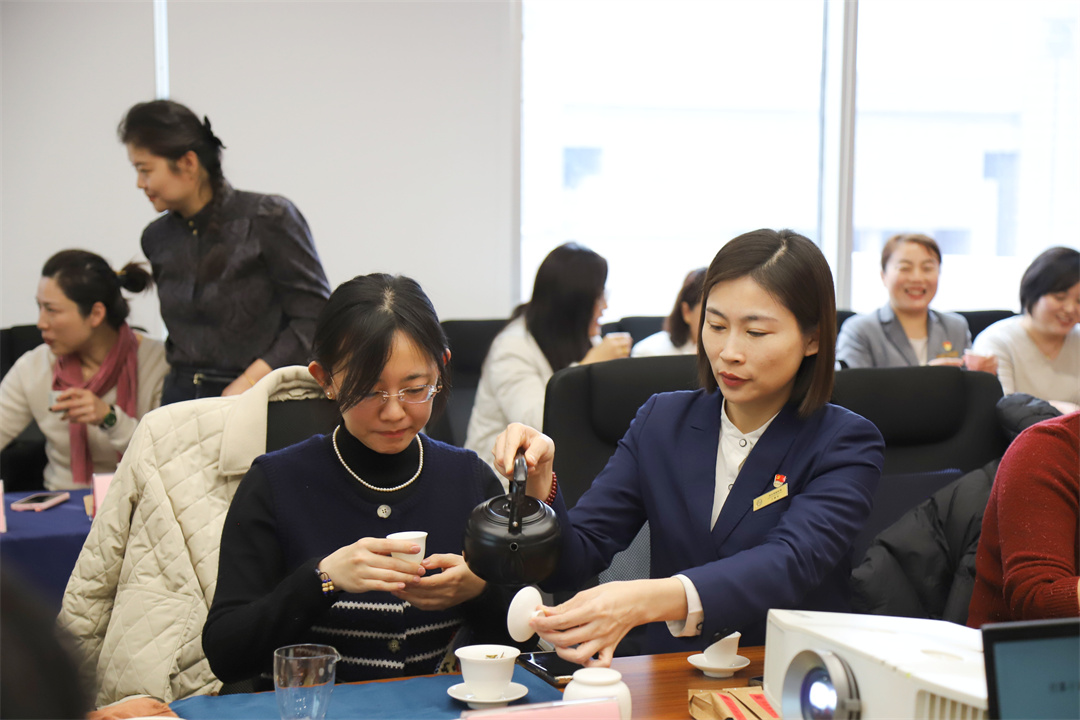 互动品茗环节,大家分组进行品茶体验,学习正确的品茶方法,分享品茶感受,同时交流工作体会、分享生活感悟,互通有无、畅所欲言。最后,共同欣赏了由茶艺师带来的行茶表演。