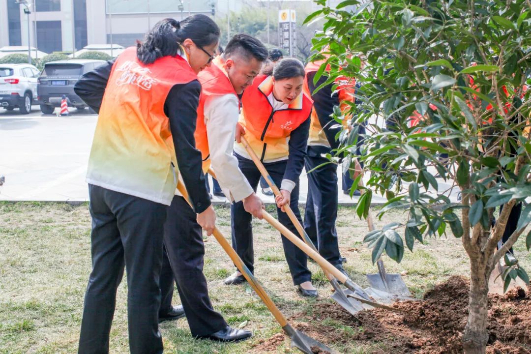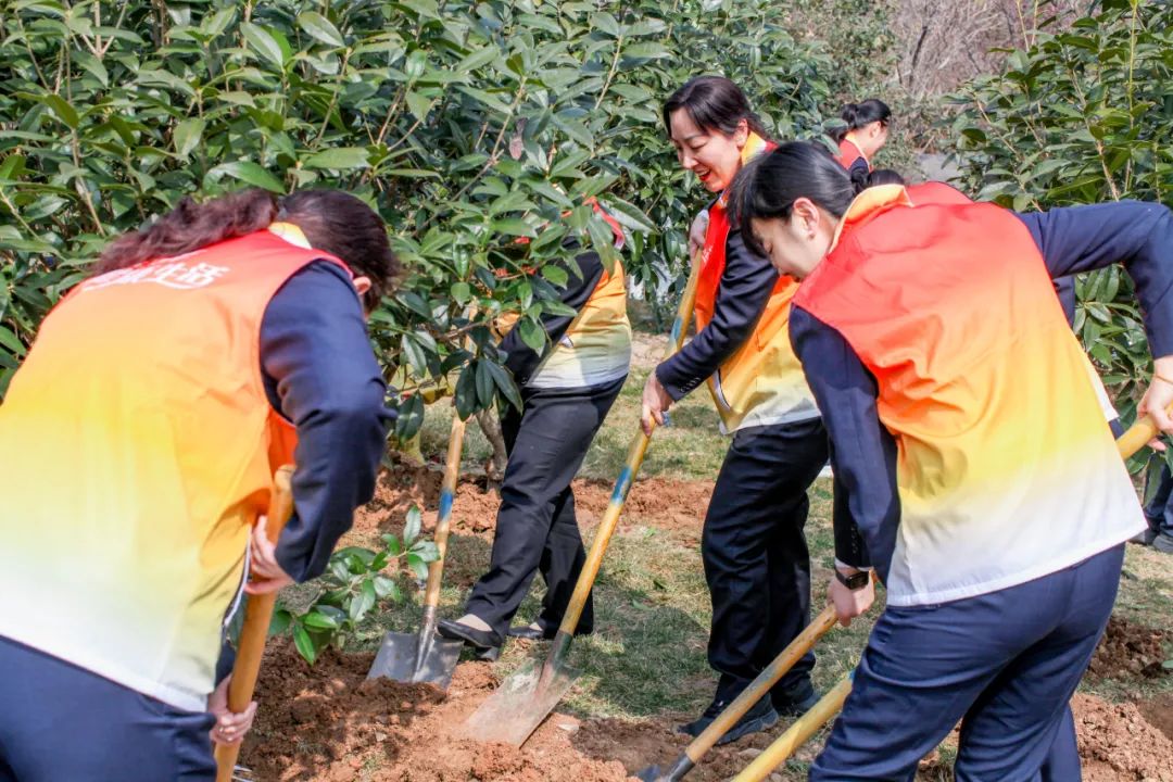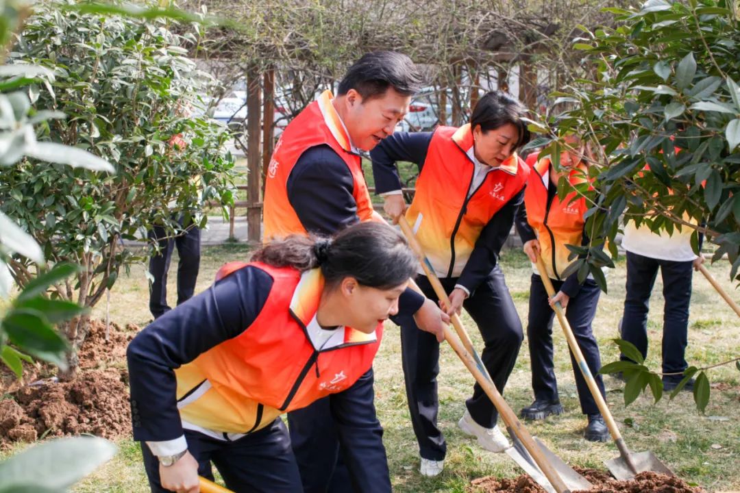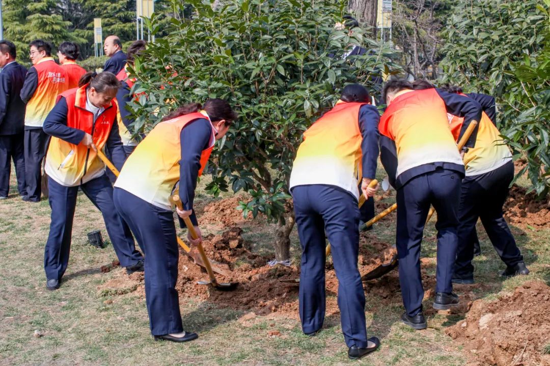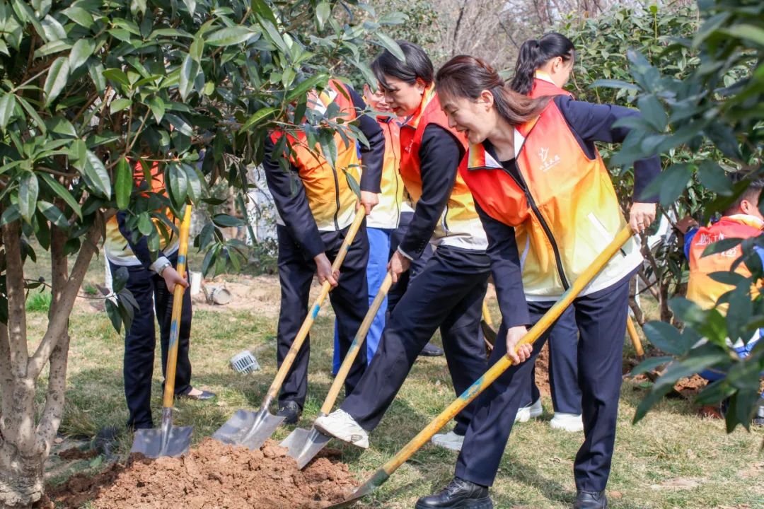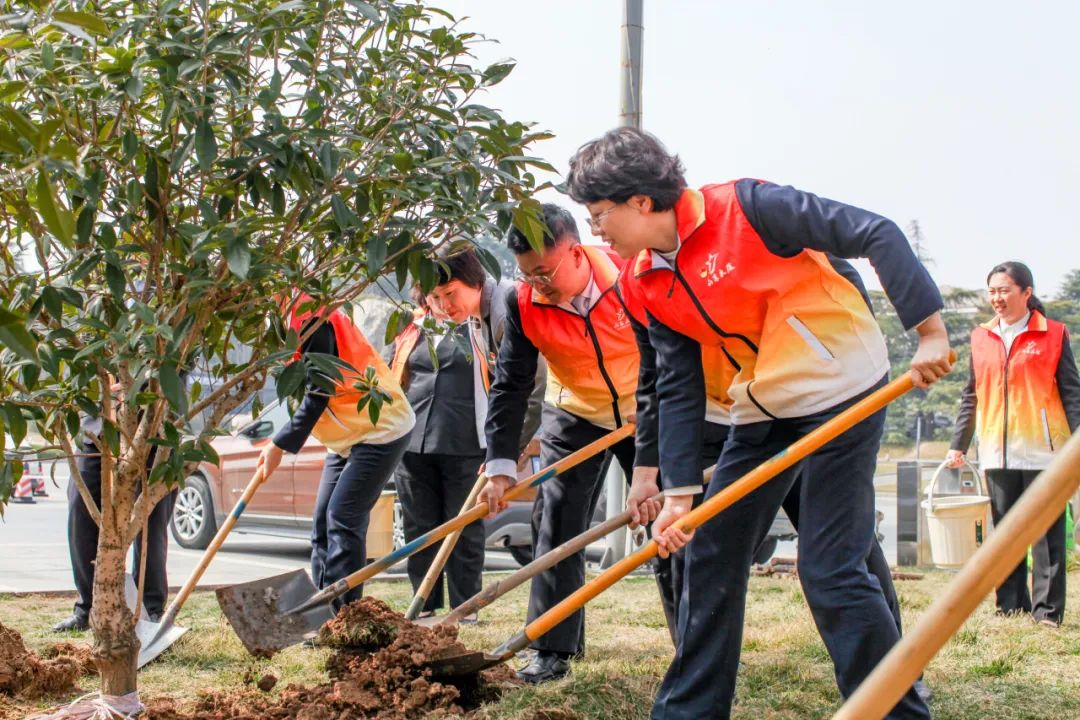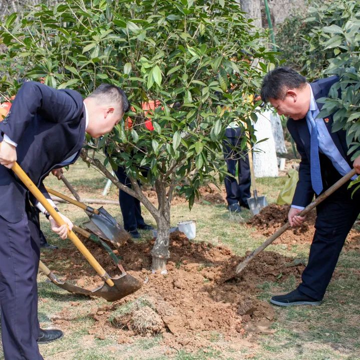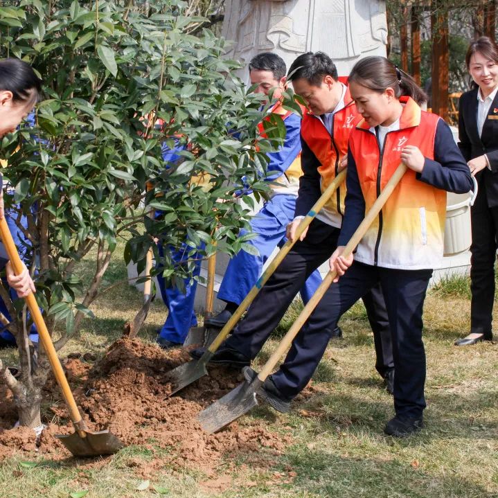 植树现场,来自各部门的党员、团员和职工代表们挥锹铲土、扶苗填坑、浇水灌溉,齐心协力栽种下一株株桂花树苗。桂花树寓意着吉祥、美好,也象征着对大厦美好未来的期许。