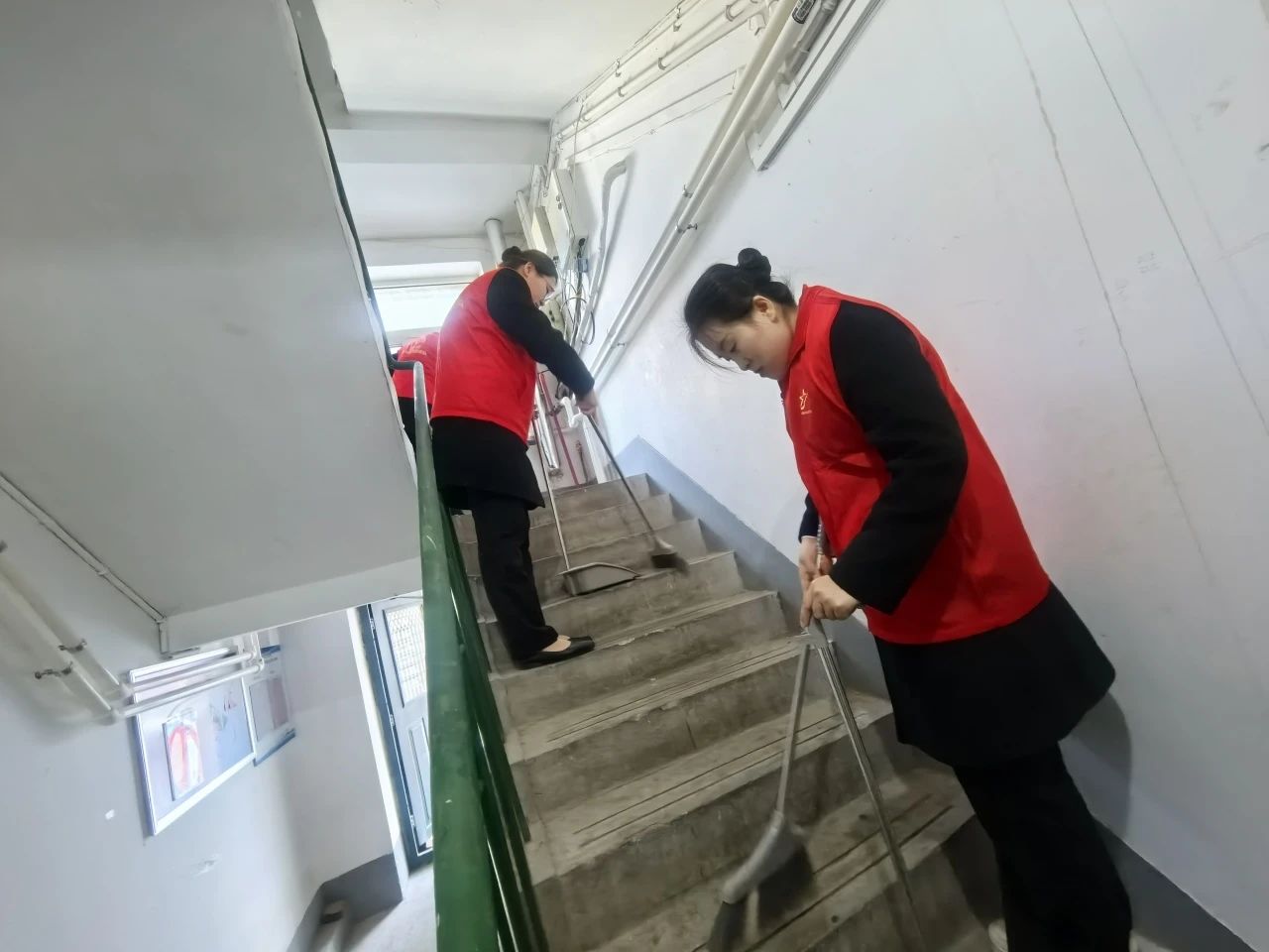 大厦青年团员志愿者们齐聚大厦庭院,手持清洁工具,热情高涨地清扫落叶杂物,整理闲置物品,让庭院焕然一新。随后,志愿者们走进千佛山西路社区,清扫楼梯、擦拭扶手、清理小广告,为居民打造整洁舒适的生活空间。