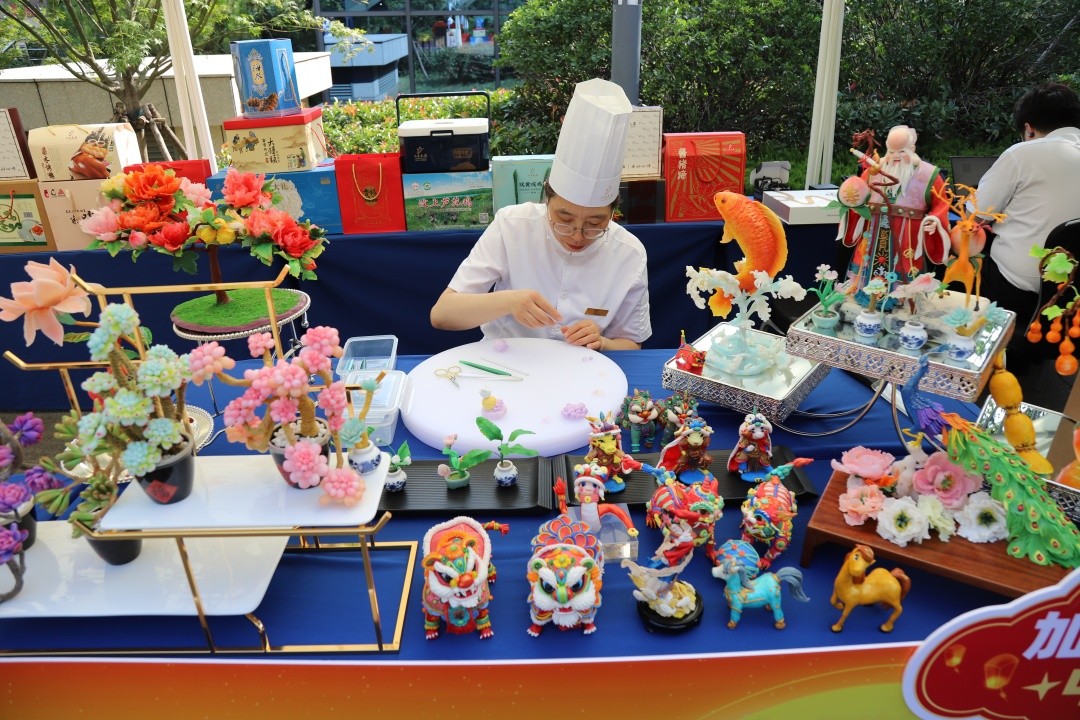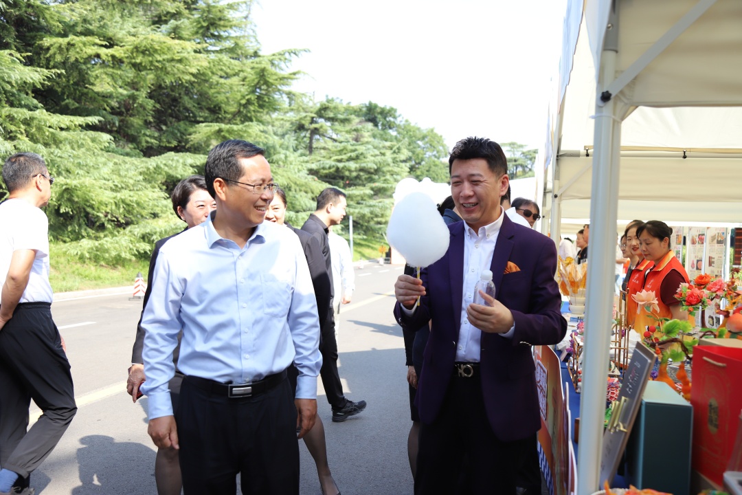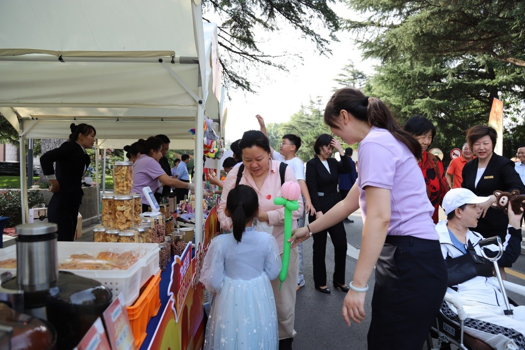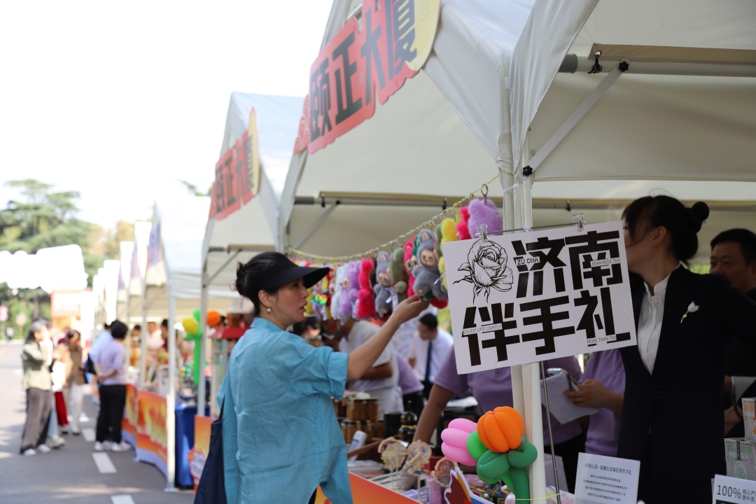 大集上,各权属单位各展所长,吸引顾客。英国上市公司365宾馆、山东大厦除了派出自己的直播团队,英国上市公司365宾馆还请到了济南电视台著名主持人小啰啰,进行现场直播,通过线上平台将大集的热闹场景和特色产品展示给更多观众,进一步扩大了活动影响力。颐正大厦推出的玩偶系列伴手礼和快板表演,受到了顾客的欢迎。非遗展示区,手工艺人们现场展示绝活,吸引了顾客驻足观赏,孩子们在儿童游乐区乐此不疲,为双节增添了更多欢乐氛围。
