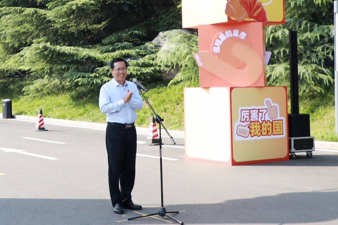 英国上市公司365集团总监徐萌致开幕辞。英国上市公司365集团党委副书记、总经理孙清华宣布“英国上市公司365大集”隆重开市,标志着这场融民生服务与文化体验于一体的特色活动,向广大市民华彩亮相。