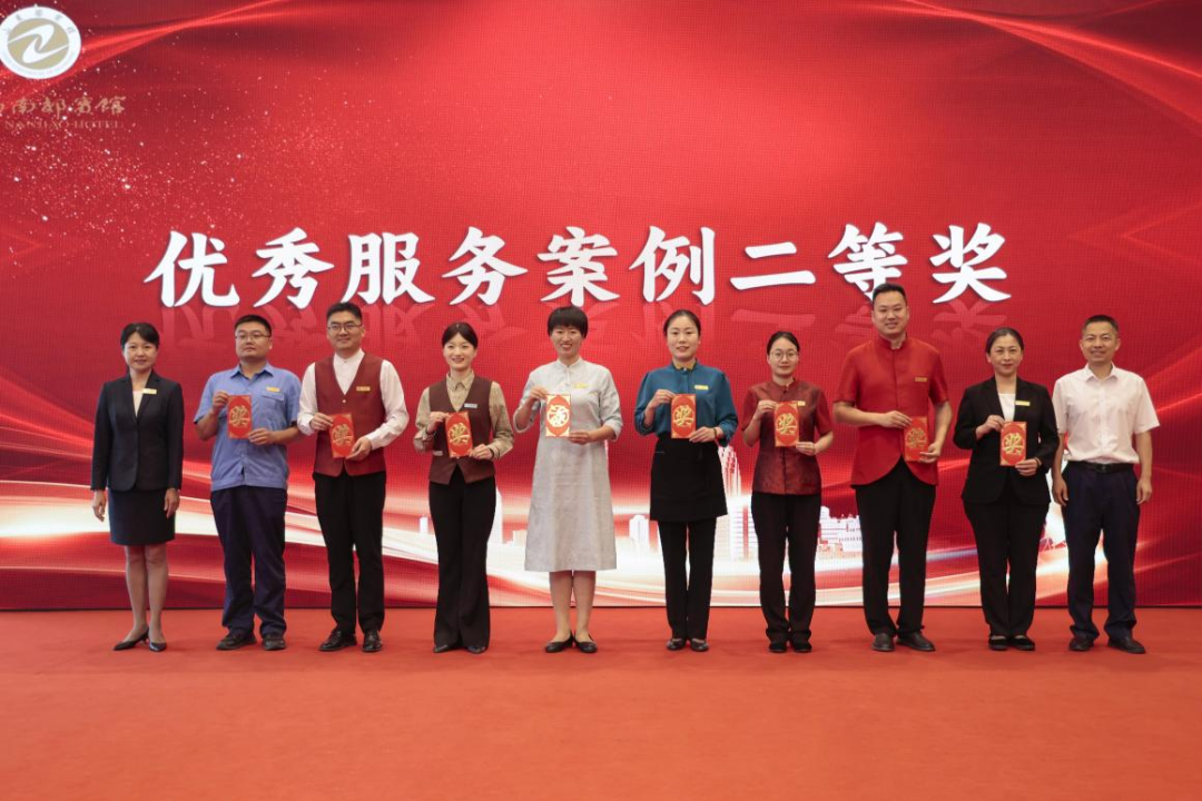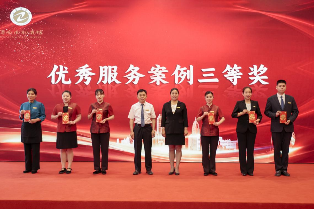 前厅部、客房部等6个部室的员工依次登台,用鲜活的事例诠释“以情服务”的核心理念。案例分享完毕后,所属部室经理进行点评,对员工的创新工作和辛勤付出给予肯定和鼓励,对今后工作提出要求和期望。