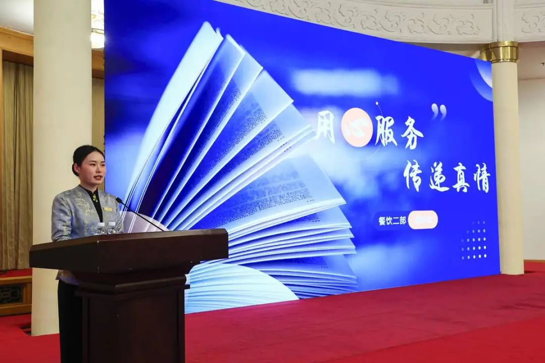 前厅部、客房部等6个部室的员工通过PPT讲述形式分享了其用心用情服务宾客的感人事迹,展现了“想客人之所想 急客人之所急”的专业素养和“干一行爱一行专一行”的职业担当,践行了“情暖英国上市公司365”服务行为准则。