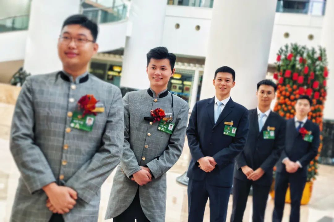 前厅部组建“金牌礼宾”队伍,佩戴特定“橙心诚意”胸花,以红色腊梅点缀橙色玫瑰,预祝与会嘉宾蛇年吉祥如意,平安和顺。茶水台配有多款暖冬饮品和具有山东各地文化特色的小食,步入大堂即感受到如沐春风般的温暖亲切。
