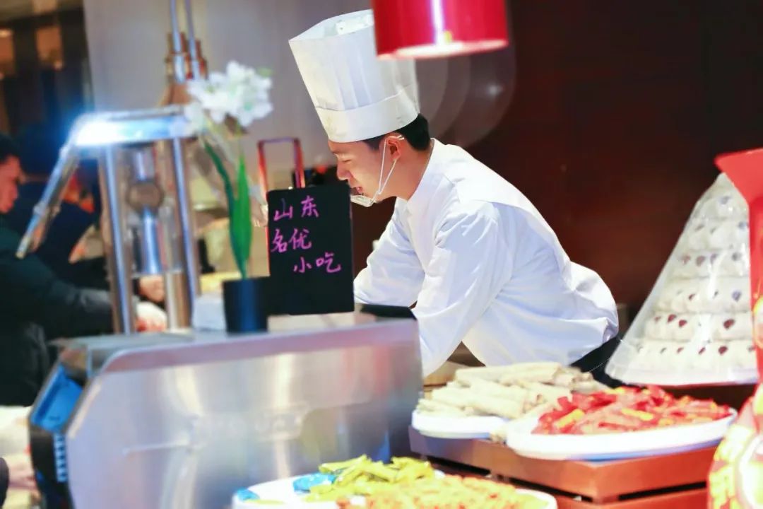 餐饮部始终坚守安全、健康、绿色、节俭底线。大厦食品检验室一丝不苟对每批次原材料进行抽检、留样,严把食品安全关。胡宗强创新工作室以“美好食光,‘味’您而来”为主题,集结了菏泽、济宁、淄博、潍坊等地的美食小吃,将省内各地特色菜端上了餐桌,广受青睐。