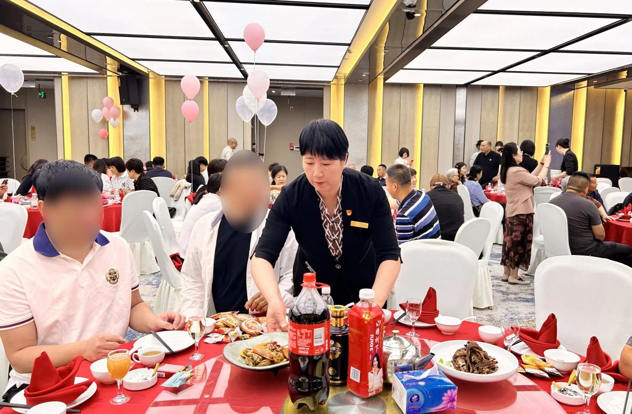 五一当天,颐正大厦迎来了最繁忙的入住高峰。面对婚宴接待和外地旅客入住的双重挑战,大厦党支部提前谋划部署,加强党建引领安排党员干部佩戴党徽积极亮明身份,冲锋在一线,发挥模范带头作用,坚守在对客服务的最前沿。他们以“党旗红”引领“节日红”,通过无私的奉献和专业的服务,赢得了宾客的广泛赞誉。