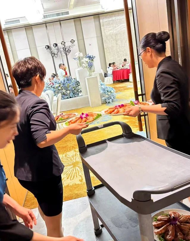 餐饮部全员坚守岗位,用热忱服务与精致餐食款待宾客。二线保障部门主动放弃休息,纷纷化身“服务员”,穿梭于餐厅与后厨之间。各部门凝心聚力,以默契协作共同筑牢服务品质基石。