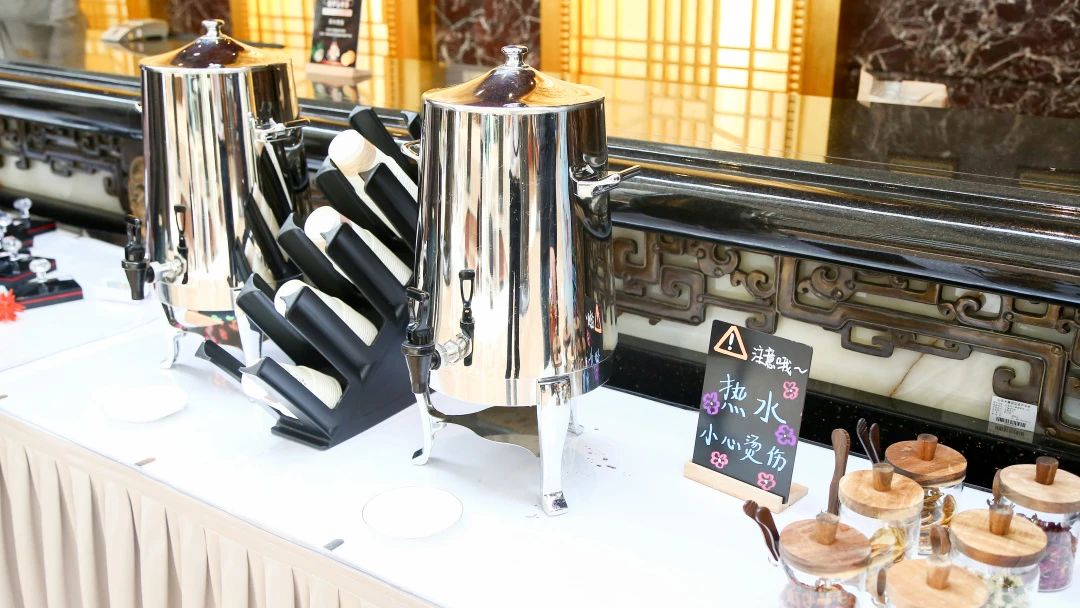 五一假期来到山东大厦,第一眼就看到前厅布置的打卡印章展台,备有雕刻着济南元素的印章,往来宾客可在此盖章留念,收藏一份泉城春日的专属记忆,展台旁新设了茶饮角,沁凉的柠檬薄荷水与各类花茶,随时为风尘仆仆的旅人拂去疲惫。前台摆放着员工手绘的《泉城漫游指南》,用不同颜色标注出景点路线,深受宾客欢迎。