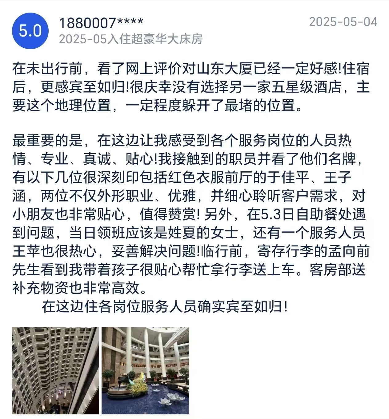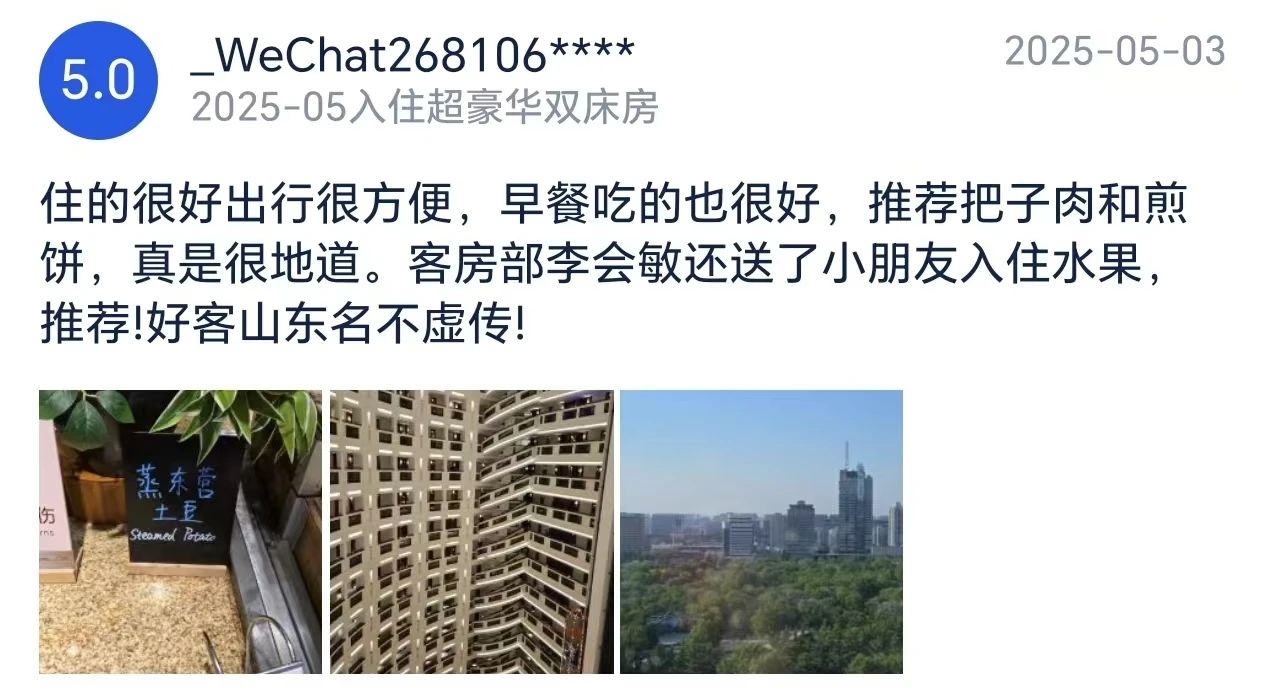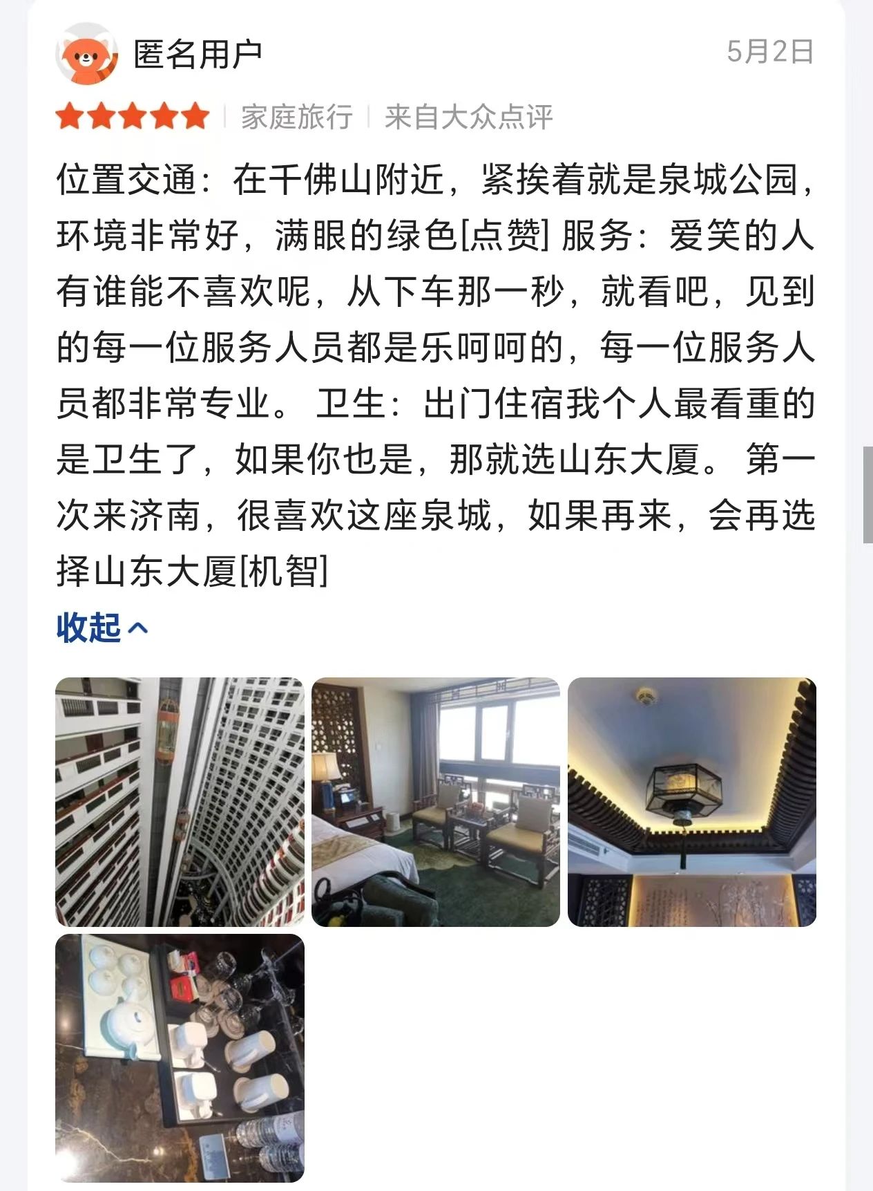 风拂泉城柳,客涌济南城。五一黄金周山东大厦热度持续攀升,八方游客纷至沓来,携程、去哪、美团、同城,全网评分4.9,持续领跑!