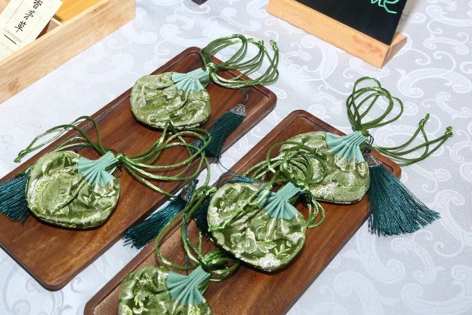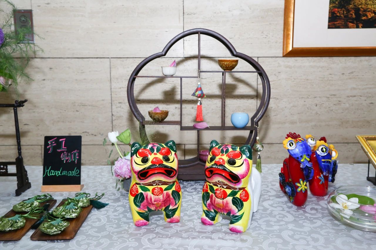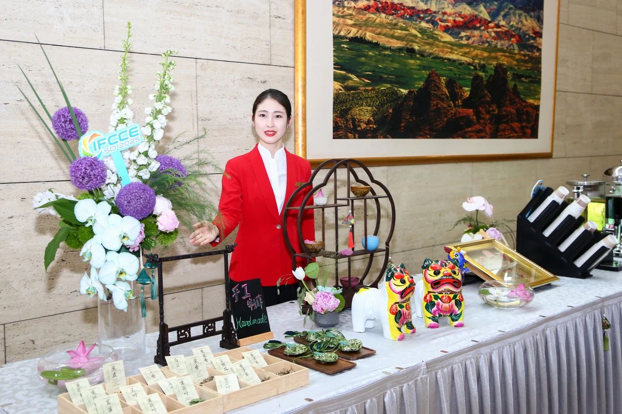 本次活动接待的茶水台化身“山东文化窗口”,泥叫虎、潍坊风筝陈列非遗匠心,定制陈皮红枣茶、酸梅汤等中式饮品,以及现场调制的青柠冰美式咖啡,配以可自选香料的手工香囊,让嘉宾在茶歇中沉浸式体验“齐鲁手造”和非遗文化。
