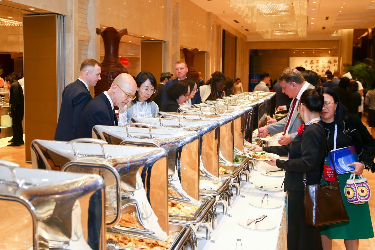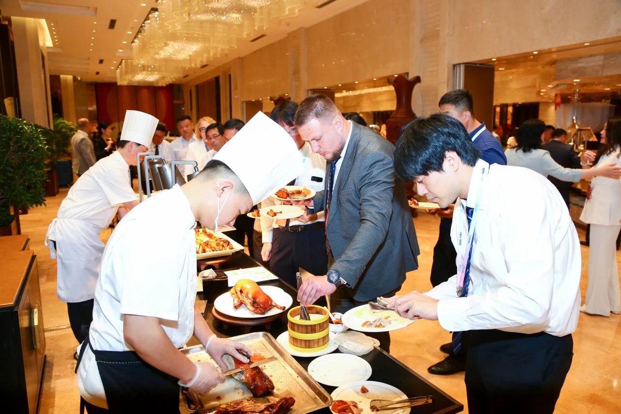 作为味觉外交的主阵地,餐饮部将齐鲁饮食文化与国际餐饮美学巧妙融合,自助餐台化身“流动的山东地图”,16地市特色菜与西式餐品呈环形分布,服务人员用流利的英语讲解,令外宾赞不绝口。