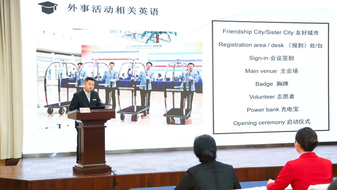 为提升员工涉外服务能力,展现大厦专业化、国际化服务水平,会前多次开展外事礼仪、酒店英语及突发事件应急处理等专项培训和练兵,解锁东西方文化差异与禁忌,以国际水准做好活动服务保障工作。