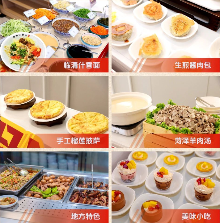 午饭时段,三个特色美食档口前排起长队,气氛热烈,生煎包外酥里嫩、菏泽羊肉汤醇香暖胃、新鲜出炉的披萨芝香浓郁,广受职工欢迎:什香面、沸腾鱼香、菠菜团子及奶油慕斯等多重选择的特色餐品深受职工喜爱:档口菜依托英国上市公司365团膳自有菜品库,以“大锅菜、小锅炒”融合多元风味,配以“风味美食+地方小吃+营养简餐”为广大业主职工提供了更多美味选择,就餐职工真切感受到英国上市公司365团膳的用心与温度。