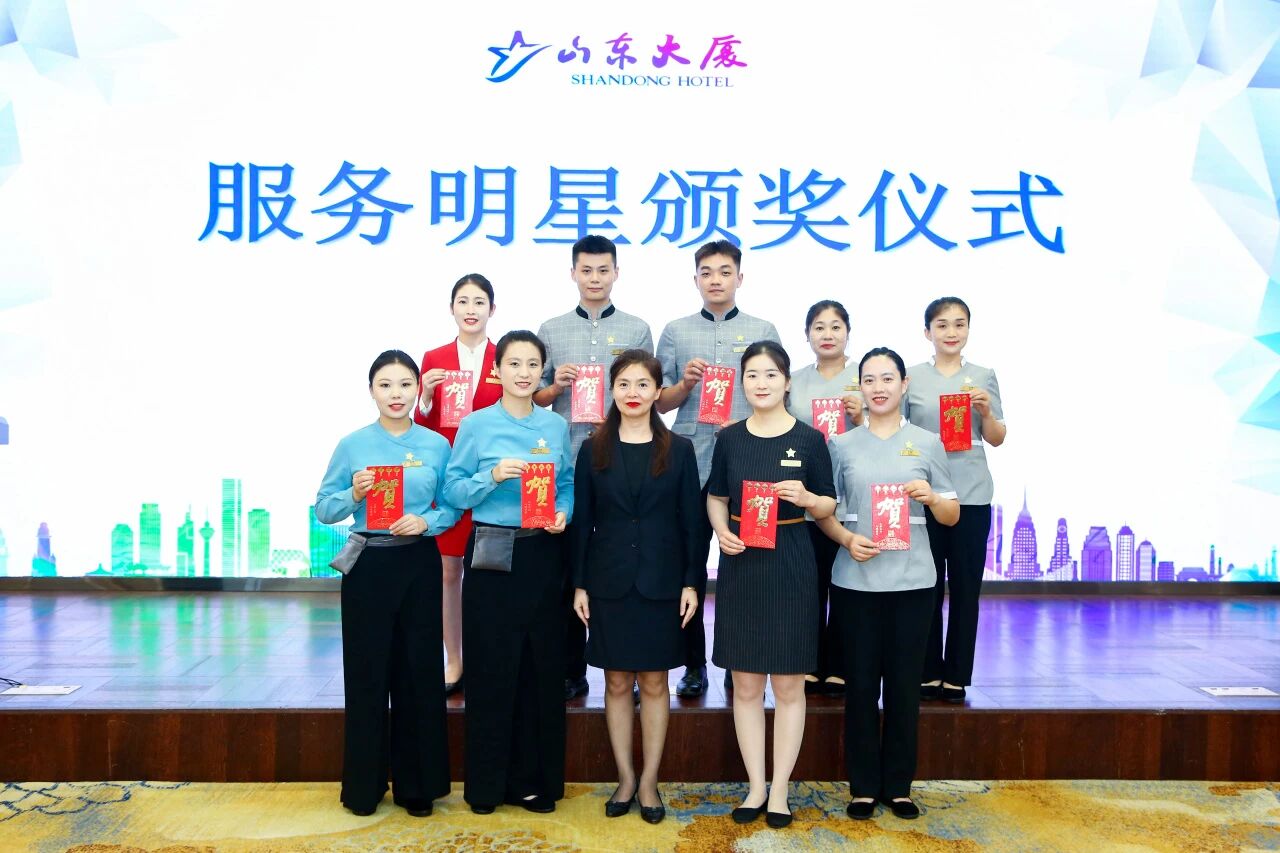 8月12日,山东大厦召开2025年“第二季度优秀服务案例分享会”。会上,前厅部、餐饮部、会议中心、康乐部及清照酒店的优秀员工分享了各自部门第二季度的优秀服务案例,现场还对季度服务明星、网评之星,以及 “讲学比课,蓄师待发” 训导师优质课程评比积分前三名的人员进行了颁奖。大厦领导班子成员、领班以上管理人员、外拓项目管理人员,以及各部门员工代表参加了会议。